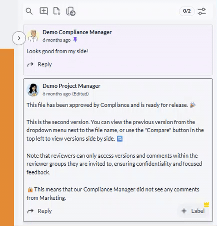 This to-do list will not be visible to your reviewers, it is completely internal and will assist you and your colleagues, irrespective of their role within your team on Filestage, in acting on feedback by marking comments as resolved. This is especially useful when reviewers request changes, and you and your team can check off any point on the list so that all team members can see that this is already implemented. Of course, it's up to you how you want to use this list.