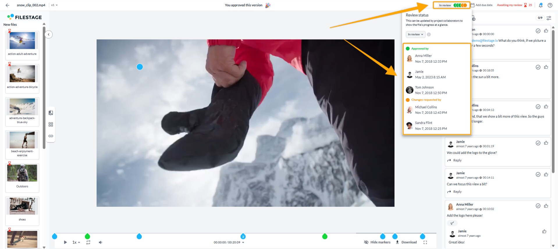 En la mayoría de los casos, al final de la revisión es necesario tomar una decisión definitiva sobre el archivo. Para ello, Filestage ofrece la posibilidad de enviar las decisiones de revisión. De este modo, puede enviar su decisión final al administrador del proyecto.