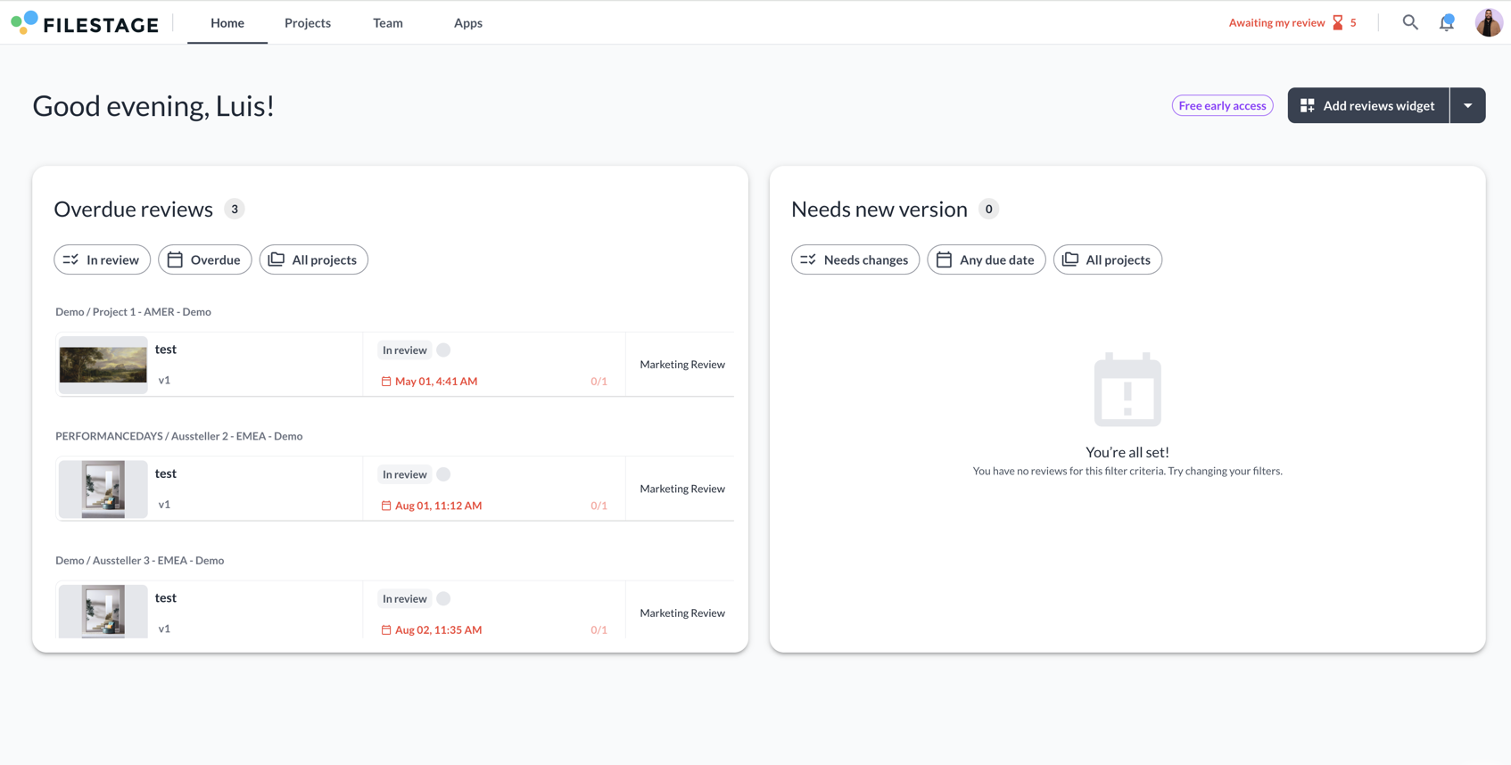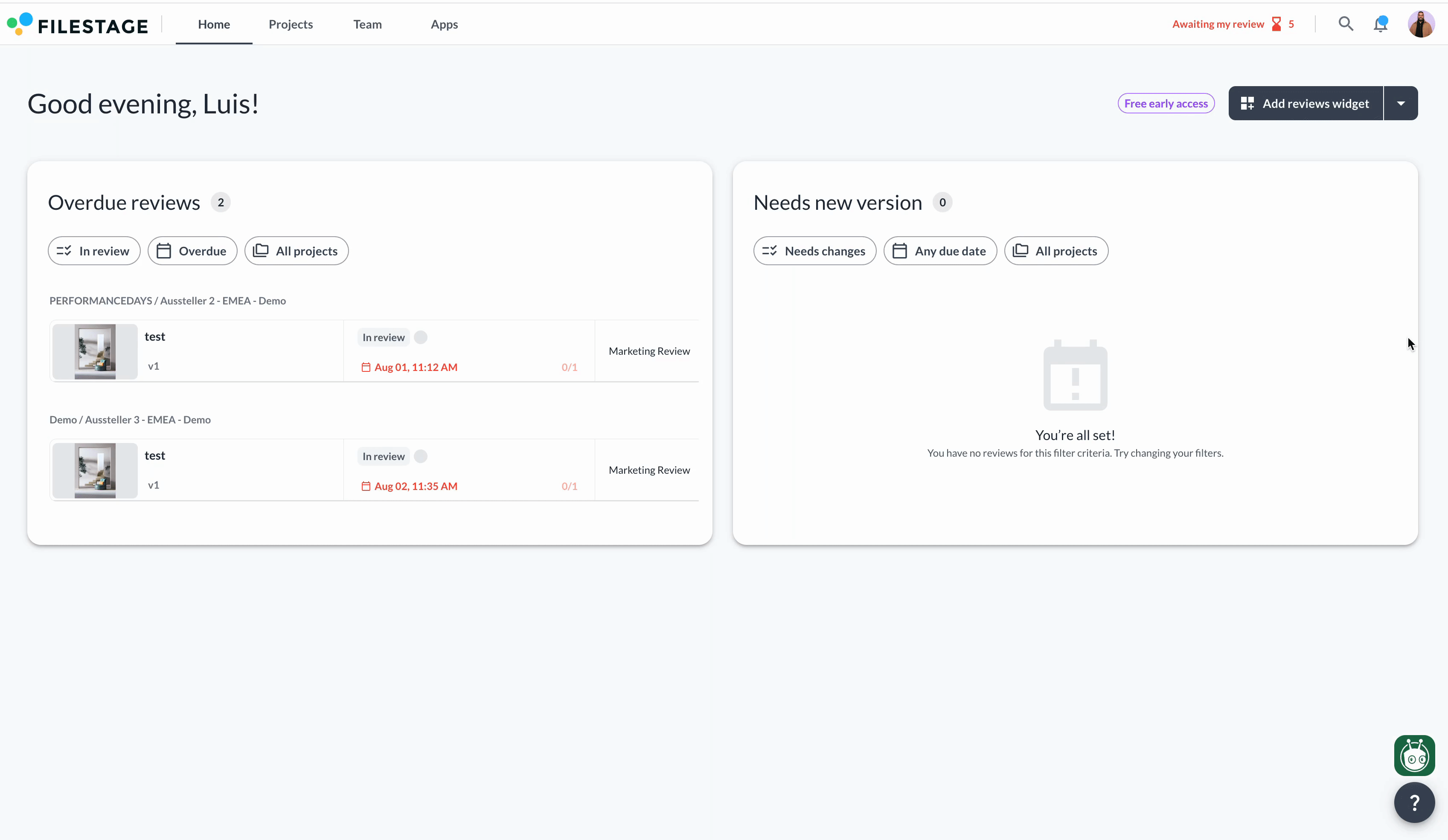 How to use the Home Tab | Filestage